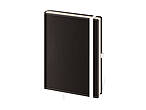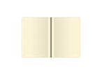 Die Oberfläche des Notizbuchs ist aus universellem Material auf Basis veredelten Papiers, welches dank seiner feinen Struktur an Kunstleder erinnert. Das Notizbuch verfügt ausserdem über ein Gummiband zum Verschliessen.